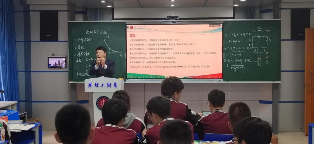 昆明理工大学附属高级中学2025-2026学年物理教研组骨干教师示范课活动圆满完成。高级教师刘智彬以《欧姆表的使用与探索》为主题展开教学,多名年青教师现场观摩学习。课堂上,学生们主动探究的鲜活状态、师生间默契的互动,以及授课教师对教学细节的精巧把控,让这堂看似普通的仪器教学课,成为兼具育人温度与教学借鉴意义的示范样本。