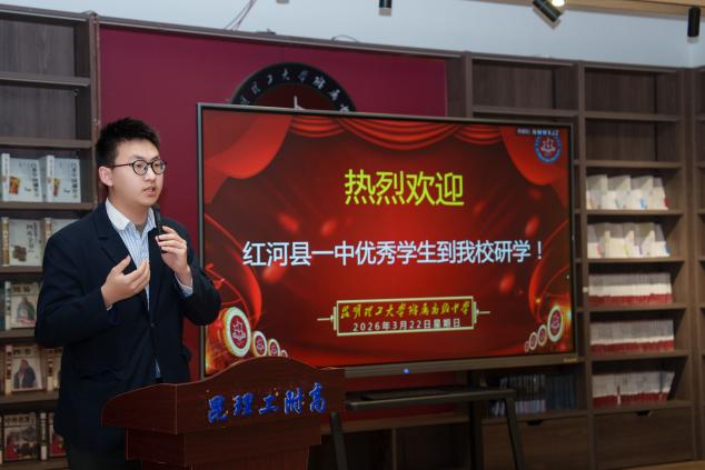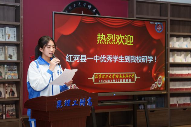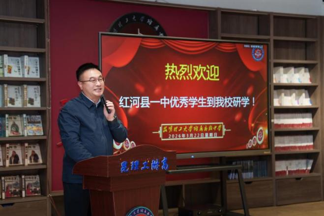 春和景明,万物勃发。2026年3月22日,昆明理工大学附属高级中学书吧内暖意融融、情谊满满。红河县第一中学22名研学师生在上海市挂职干部、红河县一中校长孙玲及副校长王学新的带领下,与昆明理工大学党委常委、副校长刘殿文,昆明理工大学乡村振兴研究院院长杨云标,昆明理工教育发展集团有限公司党委副书记、纪委书记和春华,昆明理工大学附属高级中学校长和金宇,副校长王辉,校长助理董振邦及师生代表们齐聚一堂,共赴跨越山海的教育之约,开启为期3天的研学之旅。