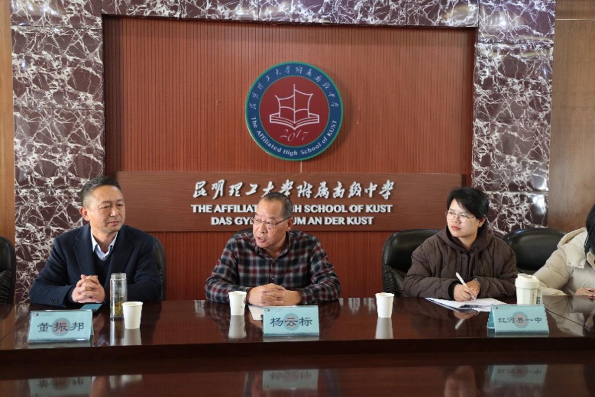 为深入贯彻落实国家乡村振兴战略,深化教育教学改革,促进校际教育资源共享,提升教师专业素养与教学能力,根据昆明理工大学乡村振兴研究院的统一安排,红河县一中于2025年11月24日至28日到昆明理工大学附属高级中学开展了为期一周的跟岗培训活动。